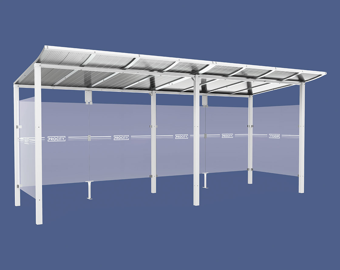 Wartehalle Modulo Farbe:RAL 9010|Länge:5 000 mm|Struktur:2 Seitenverkleidungen|Weitere Merkmale:Zum Einbetonieren