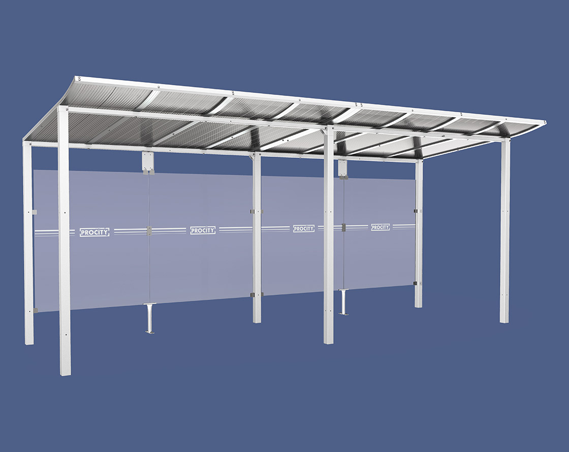 Wartehalle Modulo Farbe:RAL 9010|Länge:5 000 mm|Struktur:Ohne Seitenverkleidung|Weitere Merkmale:Zum Einbetonieren