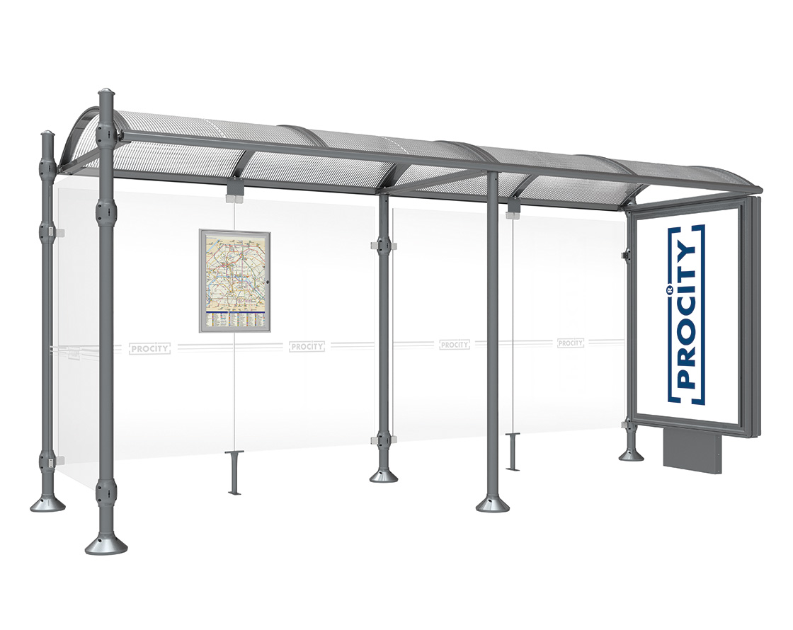 Wartehalle Province Agora Farbe:Procity grau|Länge:5000 mm|Struktur:Mit Leuchtcaisson und einer Seitenverkleidung