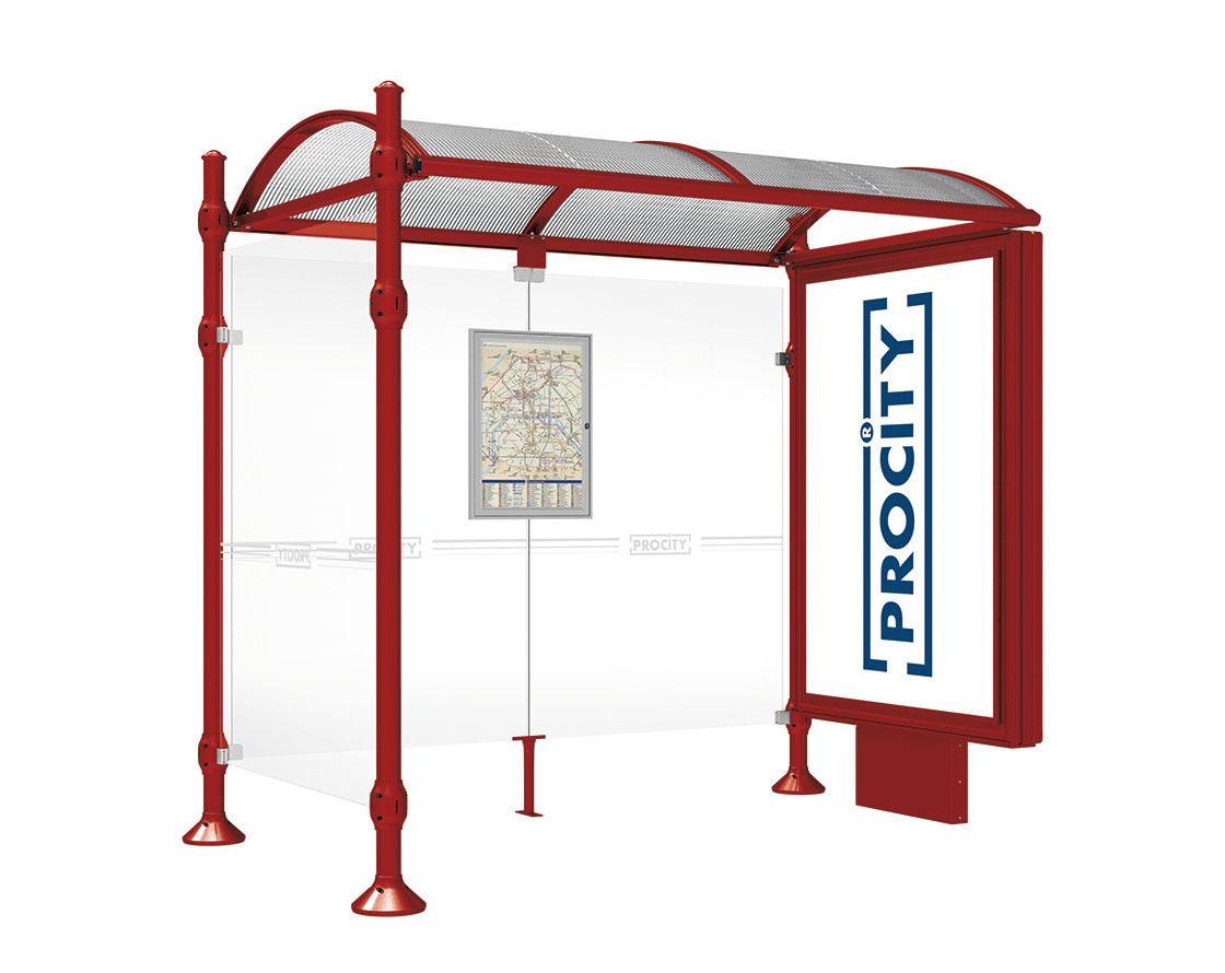 Wartehalle Province Agora Farbe:RAL 3004|Länge:2500 mm|Struktur:Mit Leuchtcaisson und einer Seitenverkleidung