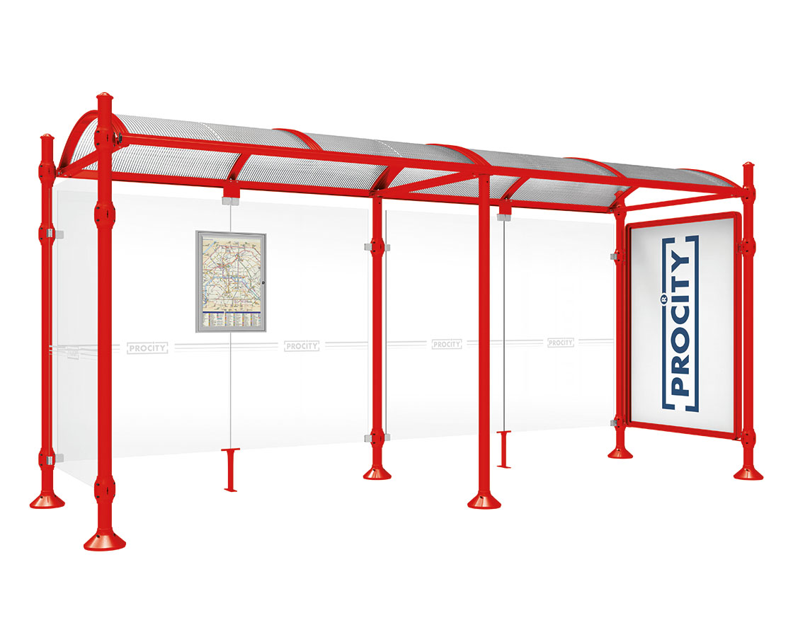 Wartehalle Province Agora Farbe:RAL 3020|Länge:5000 mm|Struktur:Mit Schaukasten 2000 und eienr Seitenverkleidung