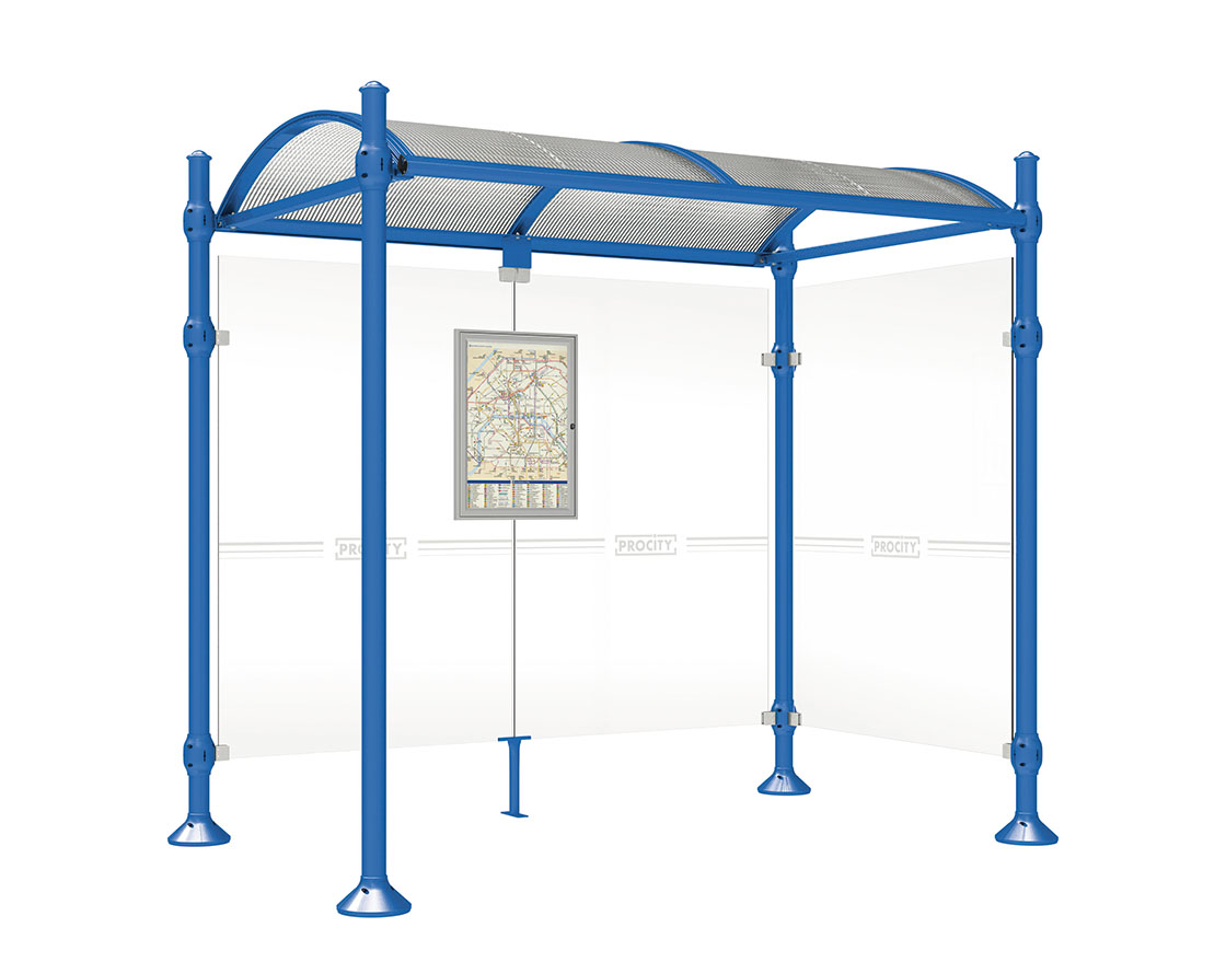 Wartehalle Province Agora Farbe:RAL 5010|Länge:2500 mm|Struktur:Mit einer Seitenverkleidung