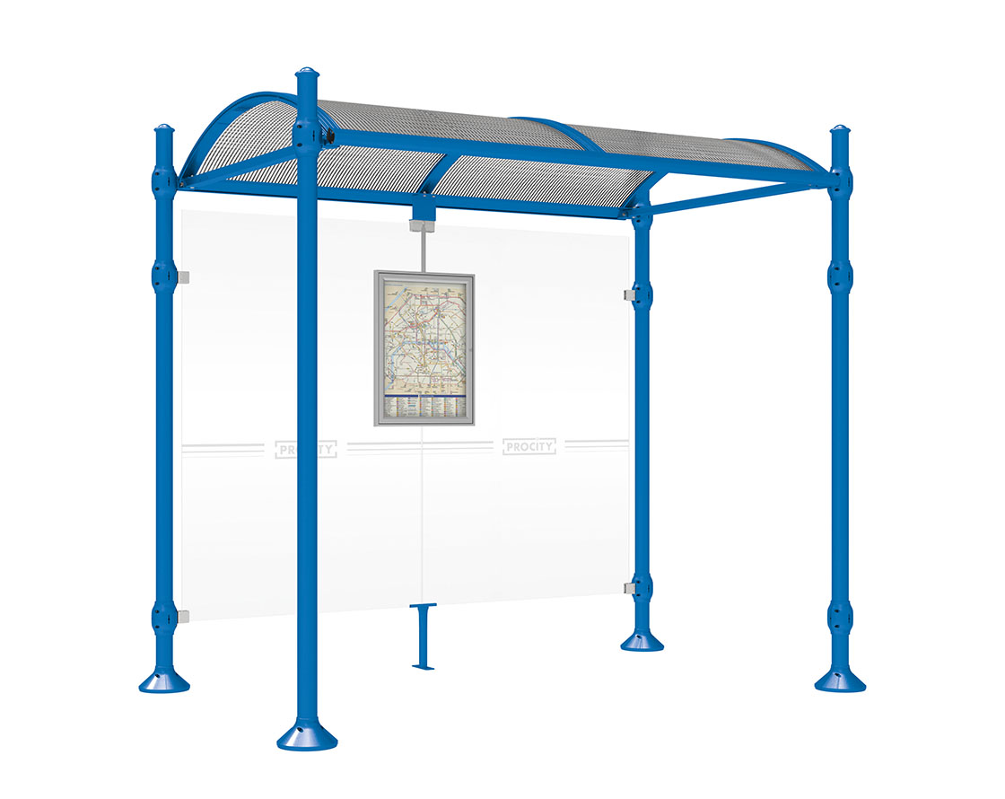 Wartehalle Province Agora Farbe:RAL 5010|Länge:2500 mm|Struktur:Ohne Seitenverkleidungen