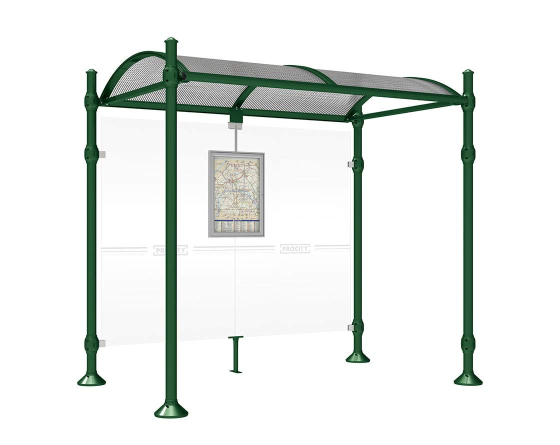 Wartehalle Province Agora Farbe:RAL 6005|Länge:2500 mm|Struktur:Ohne Seitenverkleidungen