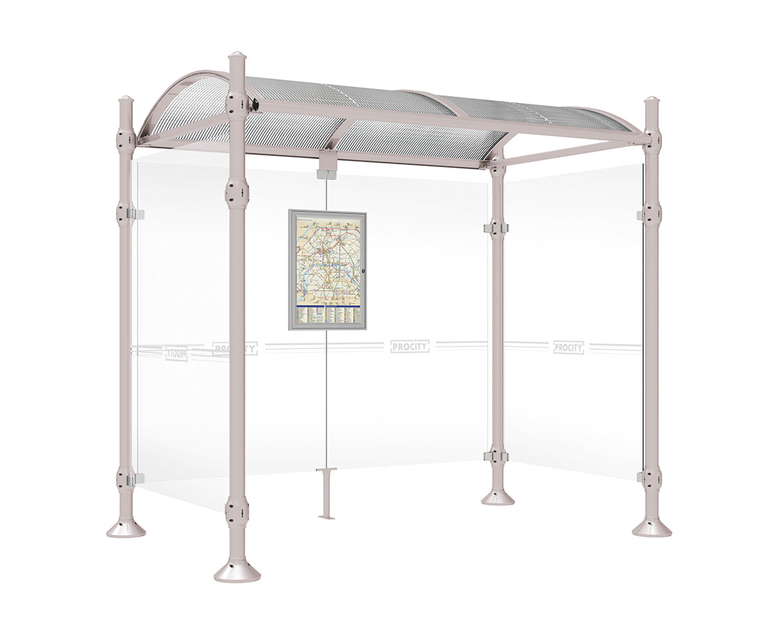 Wartehalle Province Agora Farbe:RAL 7044|Länge:2500 mm|Struktur:Mit 2 Seitenverkleidungen