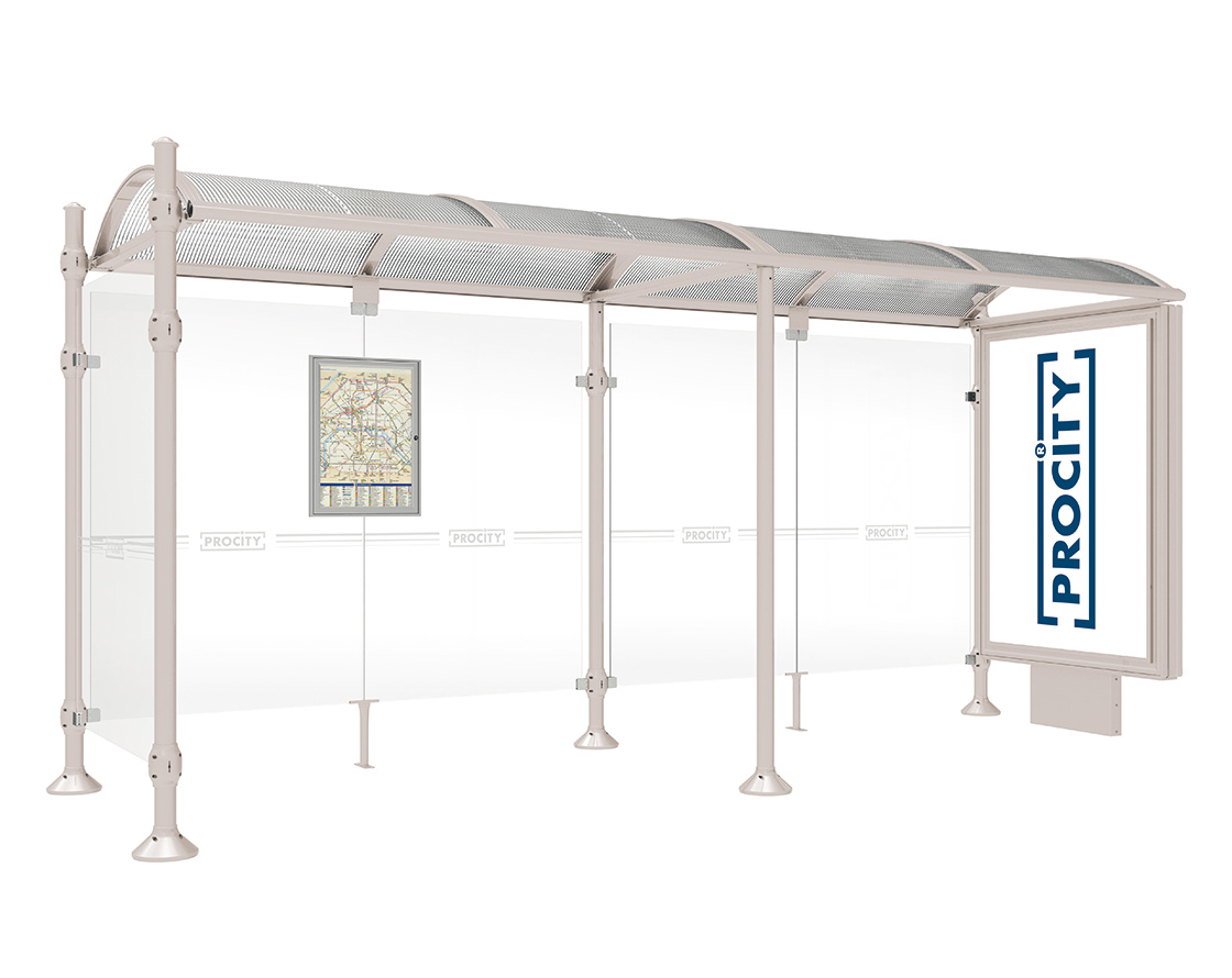 Wartehalle Province Agora Farbe:RAL 7044|Länge:5000 mm|Struktur:Mit Leuchtcaisson und einer Seitenverkleidung