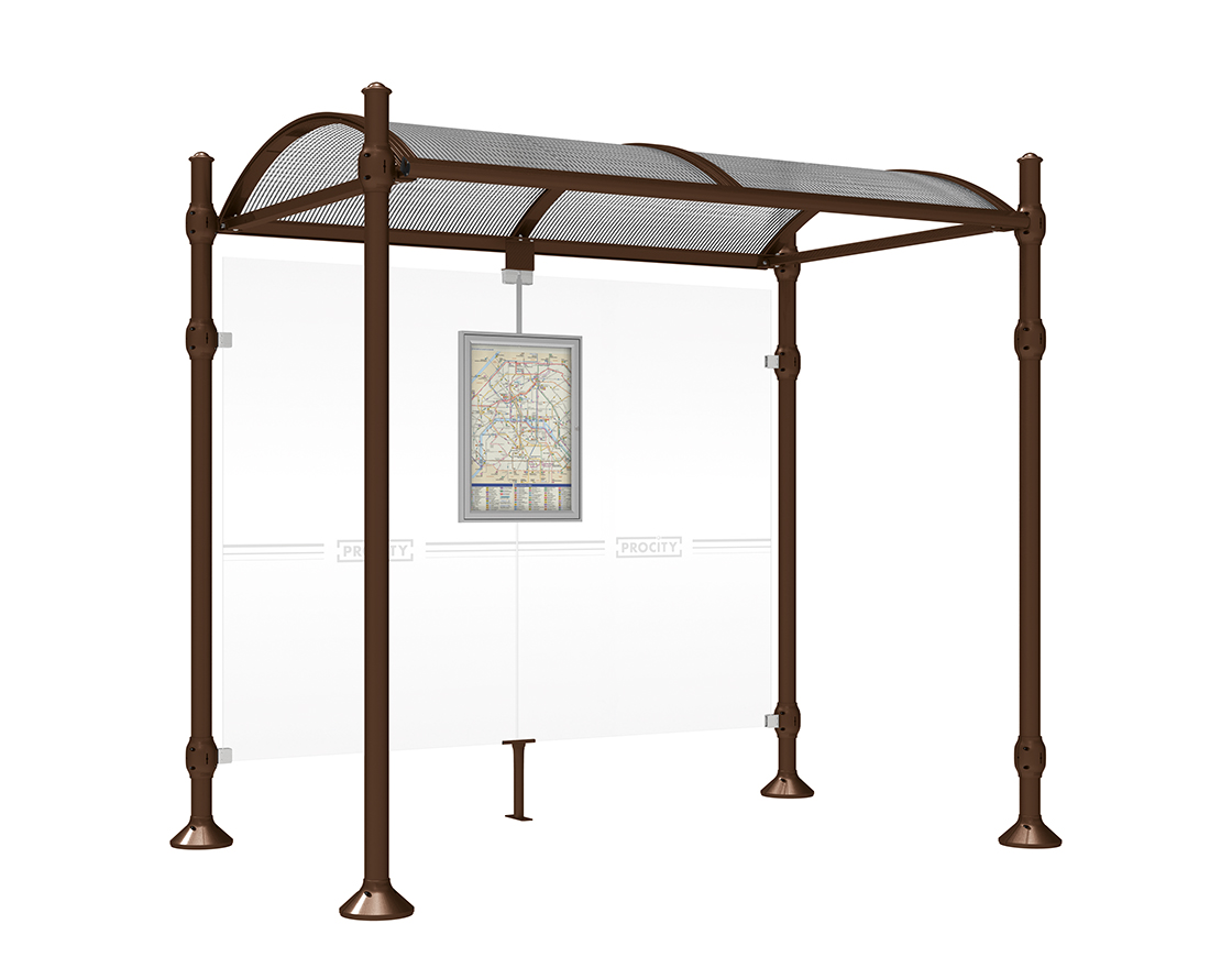 Wartehalle Province Agora Farbe:RAL 8017|Länge:2500 mm|Struktur:Ohne Seitenverkleidungen