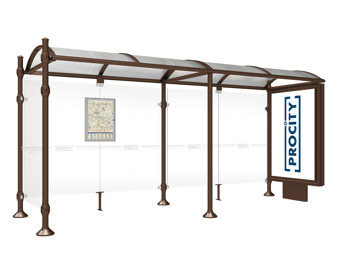Wartehalle Province Agora Farbe:RAL 8017|Länge:5000 mm|Struktur:Mit Leuchtcaisson und einer Seitenverkleidung