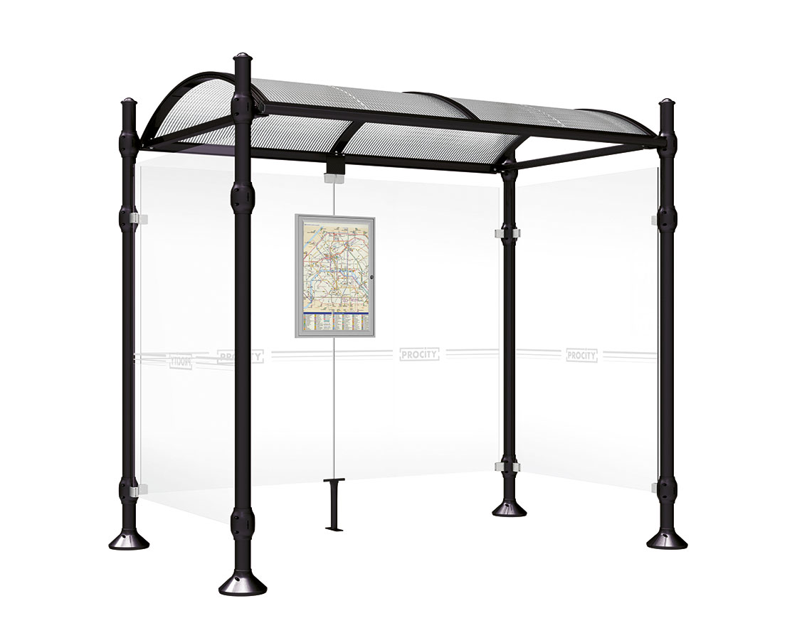 Wartehalle Province Agora Farbe:RAL 9005|Länge:2500 mm|Struktur:Mit 2 Seitenverkleidungen