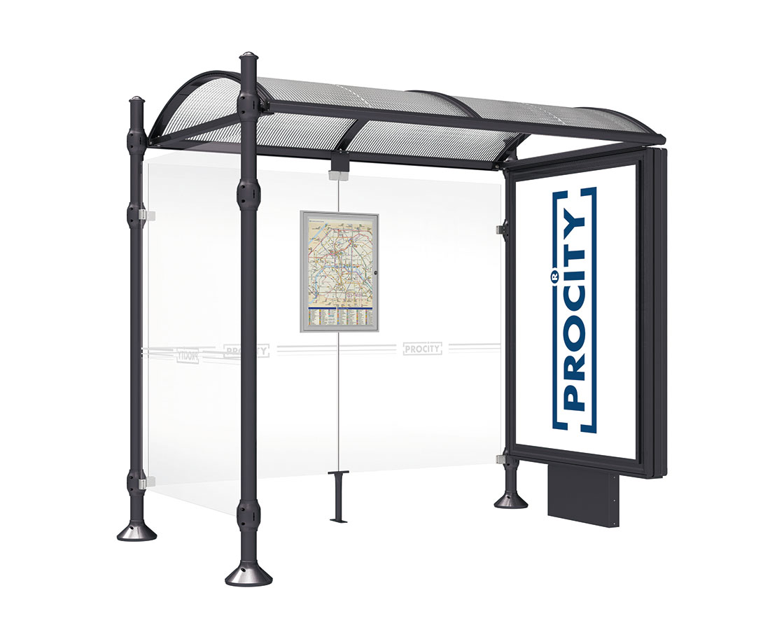 Wartehalle Province Agora Farbe:RAL 9005|Länge:2500 mm|Struktur:Mit Leuchtcaisson und einer Seitenverkleidung