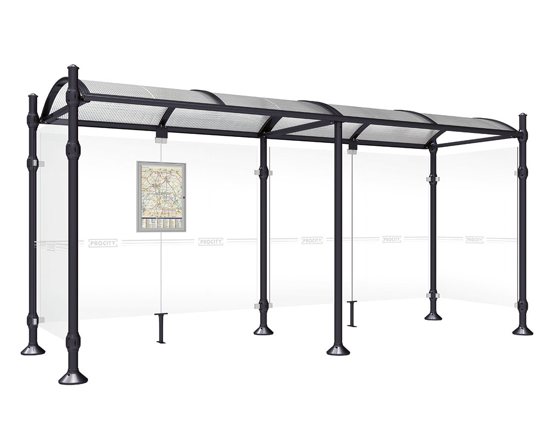 Wartehalle Province Agora Farbe:RAL 9005|Länge:5000 mm|Struktur:Mit 2 Seitenverkleidungen