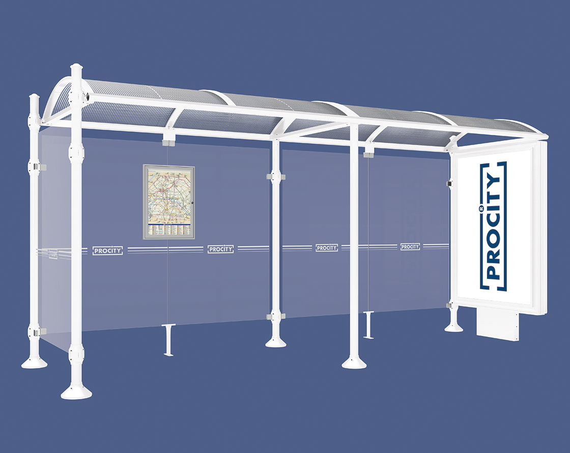 Wartehalle Province Agora Farbe:RAL 9010|Länge:5000 mm|Struktur:Mit Leuchtcaisson und einer Seitenverkleidung