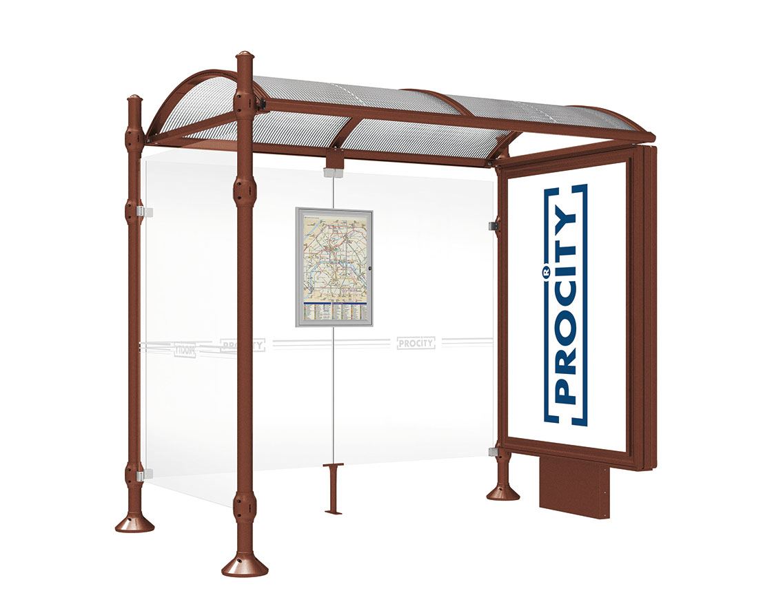 Wartehalle Province Agora Farbe:Rost Korten Effekt|Länge:2500 mm|Struktur:Mit Leuchtcaisson und einer Seitenverkleidung