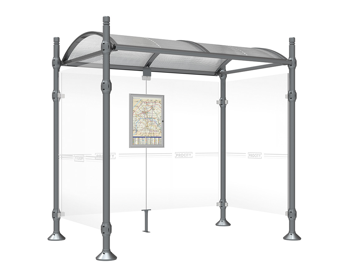 Wartehalle Province City Farbe:Procity grau|Länge:2500 mm|Struktur:Mit 2 Seitenverkleidungen
