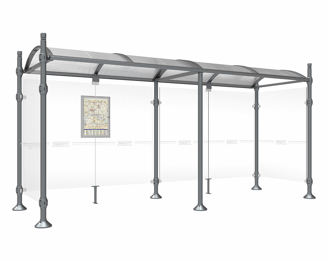 Wartehalle Province City Farbe:Procity grau|Länge:5000 mm|Struktur:Mit 2 Seitenverkleidungen