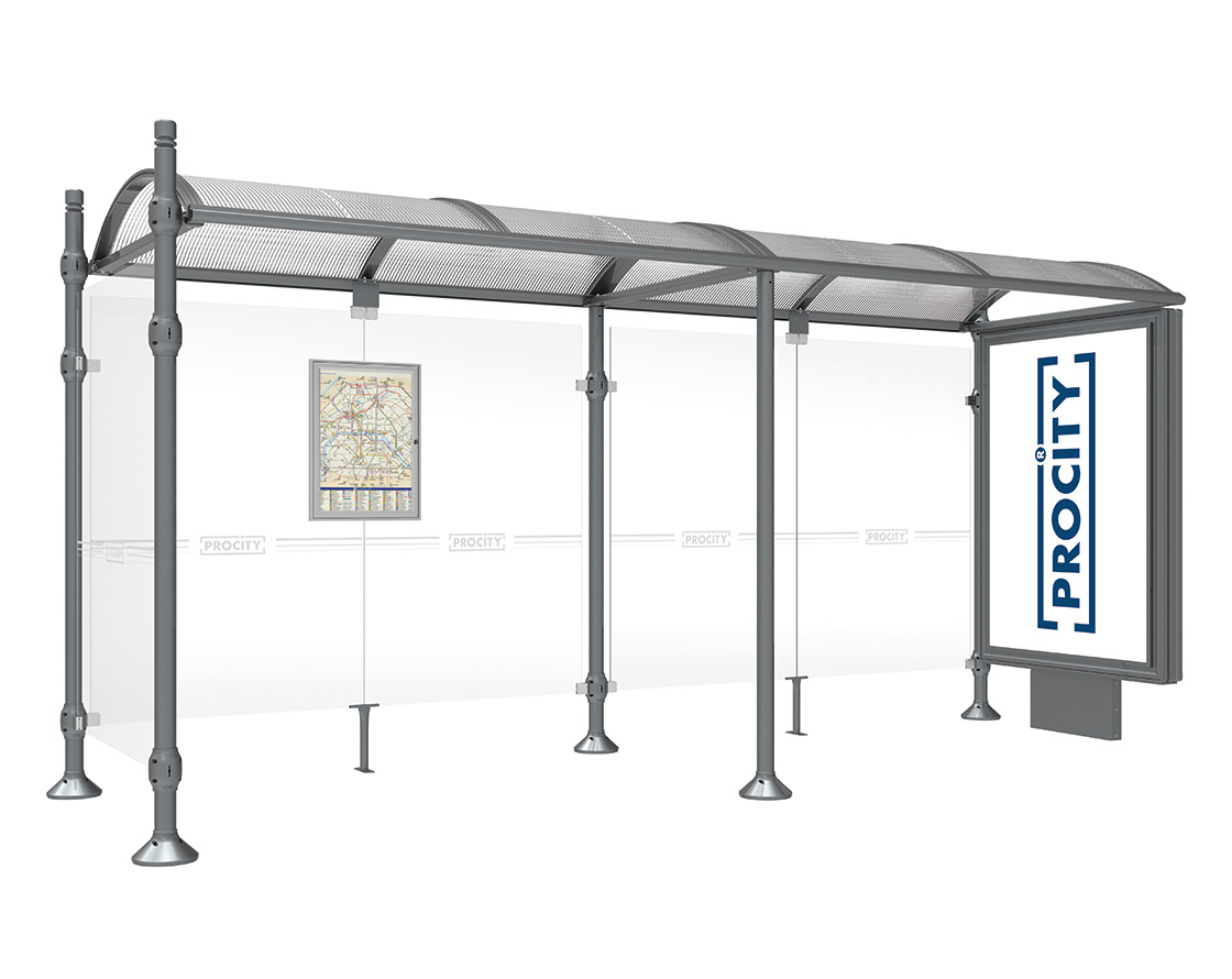 Wartehalle Province City Farbe:Procity grau|Länge:5000 mm|Struktur:Mit Leuchtcaisson und einer Seitenverkleidung