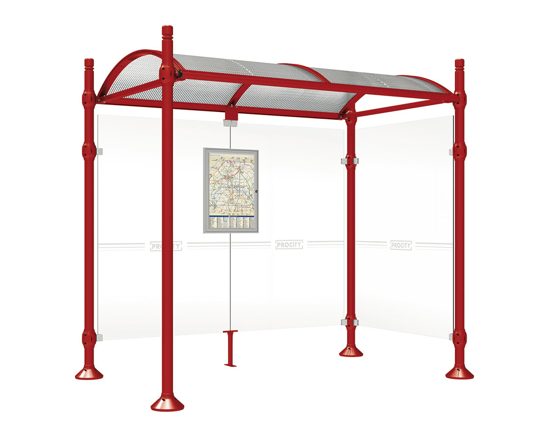Wartehalle Province City Farbe:RAL 3004|Länge:2500 mm|Struktur:Mit einer Seitenverkleidung