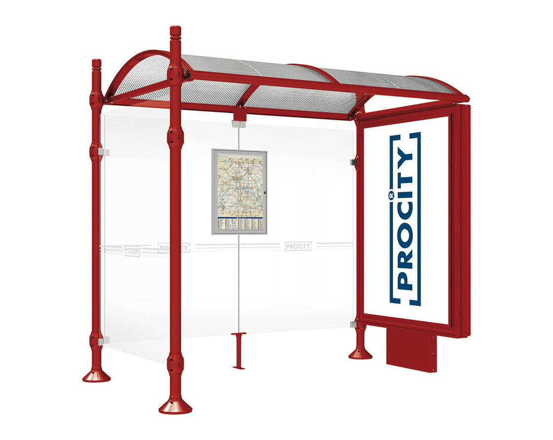 Wartehalle Province City Farbe:RAL 3004|Länge:2500 mm|Struktur:Mit Leuchtcaisson und einer Seitenverkleidung