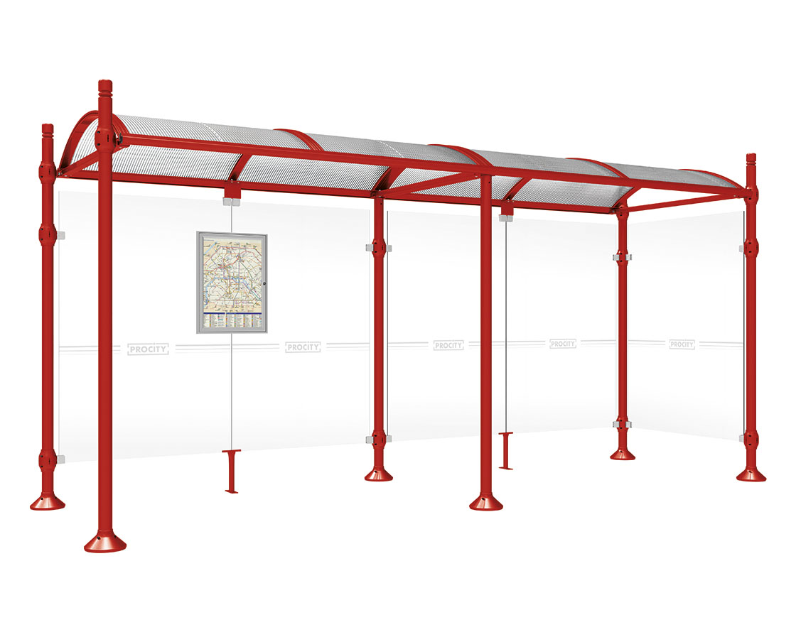 Wartehalle Province City Farbe:RAL 3004|Länge:5000 mm|Struktur:Mit einer Seitenverkleidung