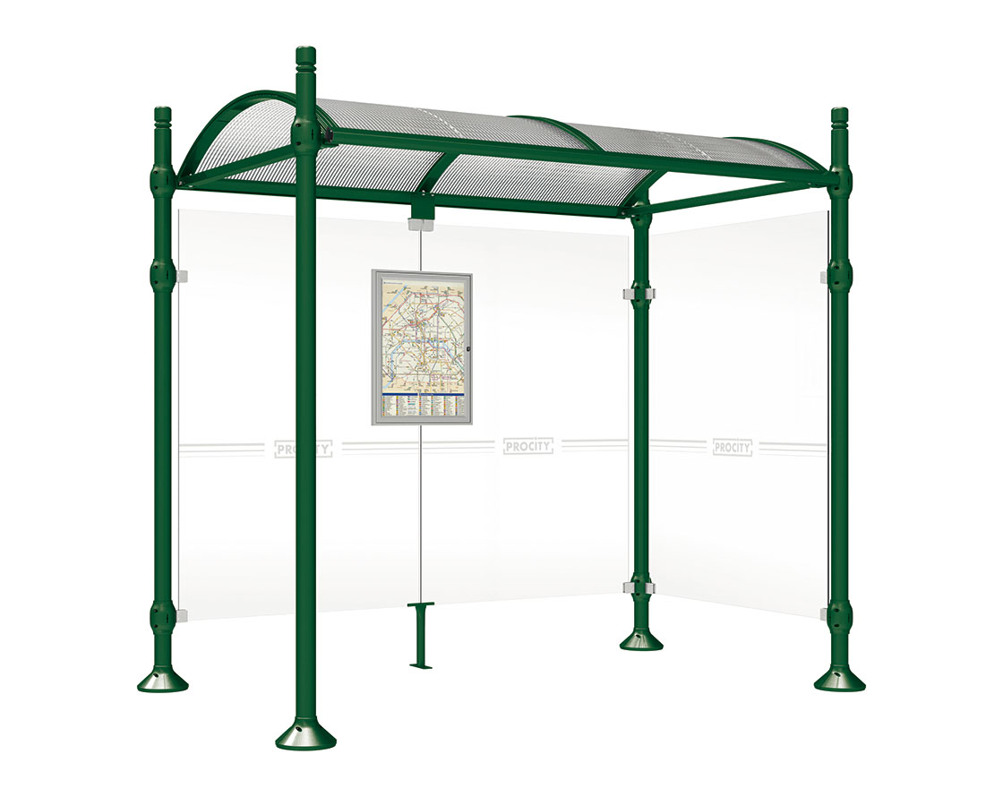 Wartehalle Province City Farbe:RAL 6005|Länge:2500 mm|Struktur:Mit einer Seitenverkleidung