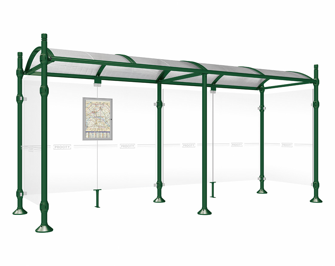 Wartehalle Province City Farbe:RAL 6005|Länge:5000 mm|Struktur:Mit 2 Seitenverkleidungen