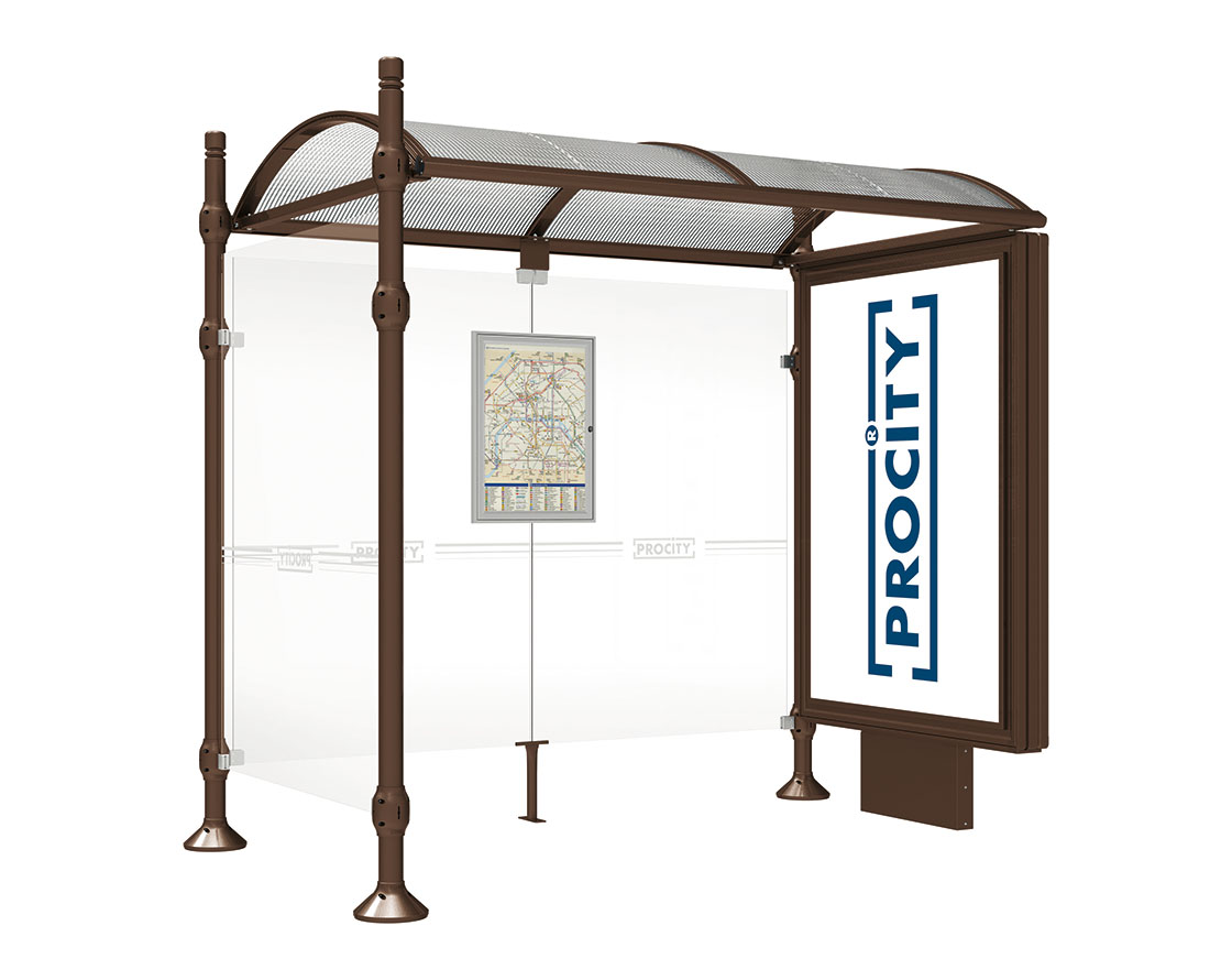 Wartehalle Province City Farbe:RAL 8017|Länge:2500 mm|Struktur:Mit Leuchtcaisson und einer Seitenverkleidung
