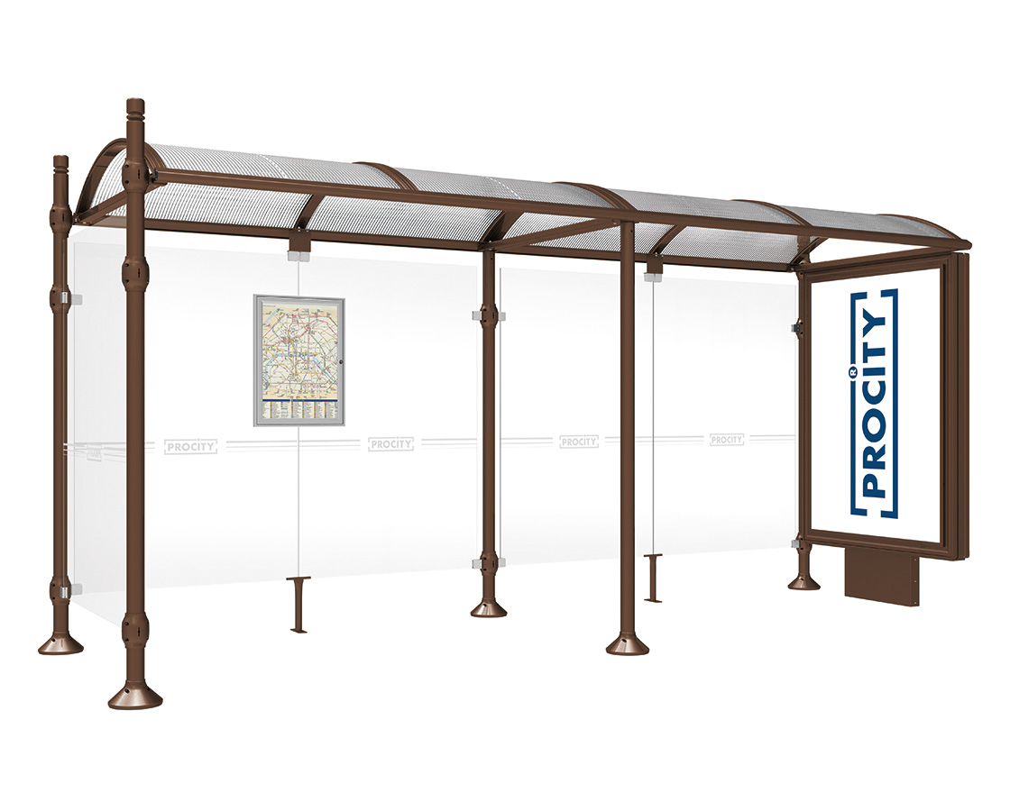 Wartehalle Province City Farbe:RAL 8017|Länge:5000 mm|Struktur:Mit Leuchtcaisson und einer Seitenverkleidung