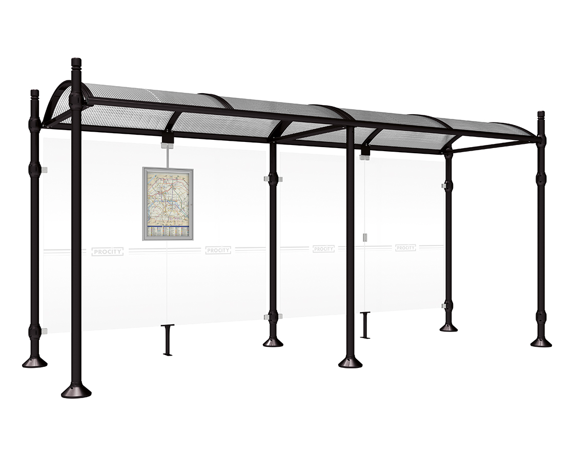Wartehalle Province City Farbe:RAL 9005|Länge:5000 mm|Struktur:Ohne Seitenverkleidungen