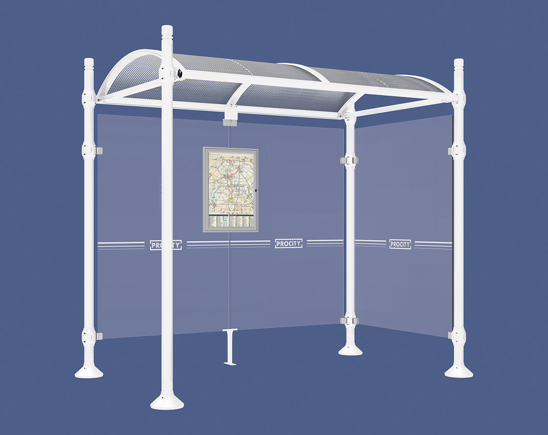 Wartehalle Province City Farbe:RAL 9010|Länge:2500 mm|Struktur:Mit einer Seitenverkleidung