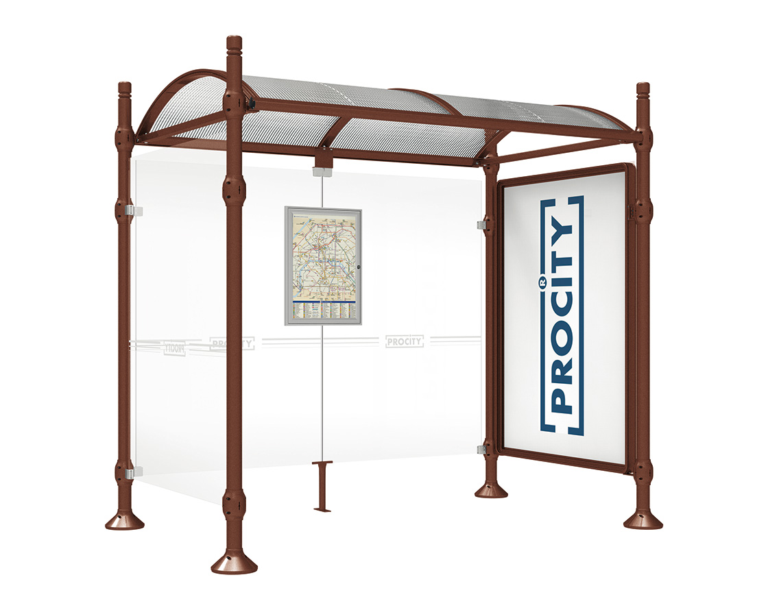 Wartehalle Province City Farbe:Rost Korten Effekt|Länge:2500 mm|Struktur:Mit Schaukasten 2000 und eienr Seitenverkleidung