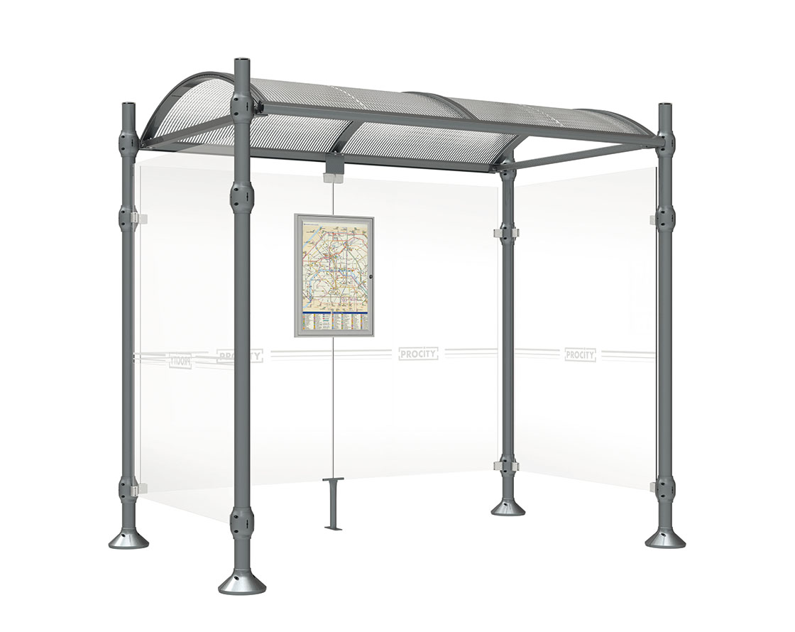 Wartehalle Province Gebürsteter Edelstahl Farbe:Procity grau|Länge:2500 mm|Struktur:Mit 2 Seitenverkleidungen