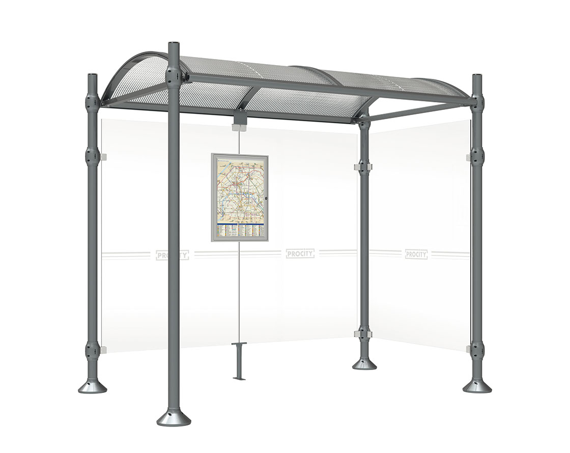 Wartehalle Province Gebürsteter Edelstahl Farbe:Procity grau|Länge:2500 mm|Struktur:Mit einer Seitenverkleidung