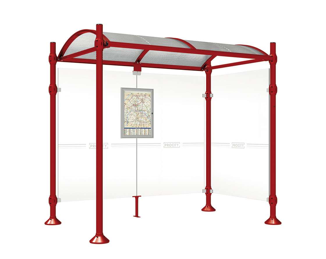 Wartehalle Province Gebürsteter Edelstahl Farbe:RAL 3004|Länge:2500 mm|Struktur:Mit einer Seitenverkleidung