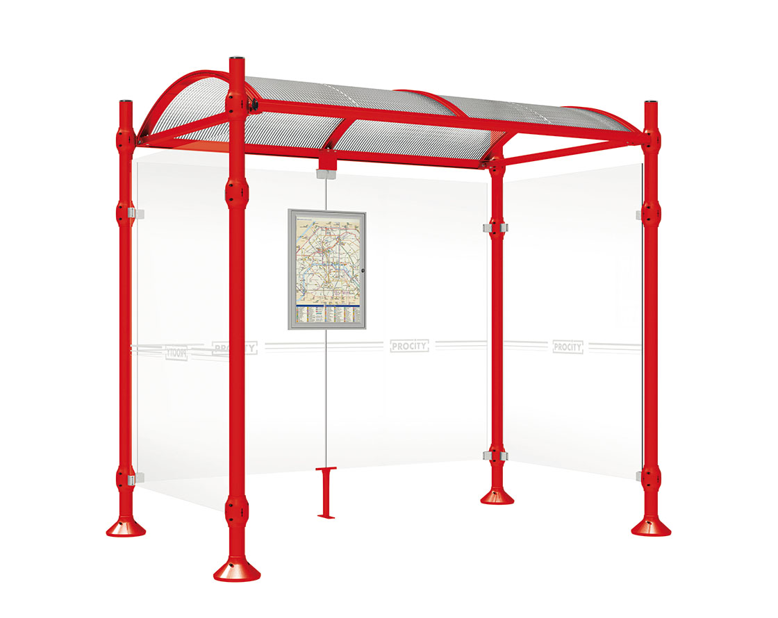 Wartehalle Province Gebürsteter Edelstahl Farbe:RAL 3020|Länge:2500 mm|Struktur:Mit 2 Seitenverkleidungen