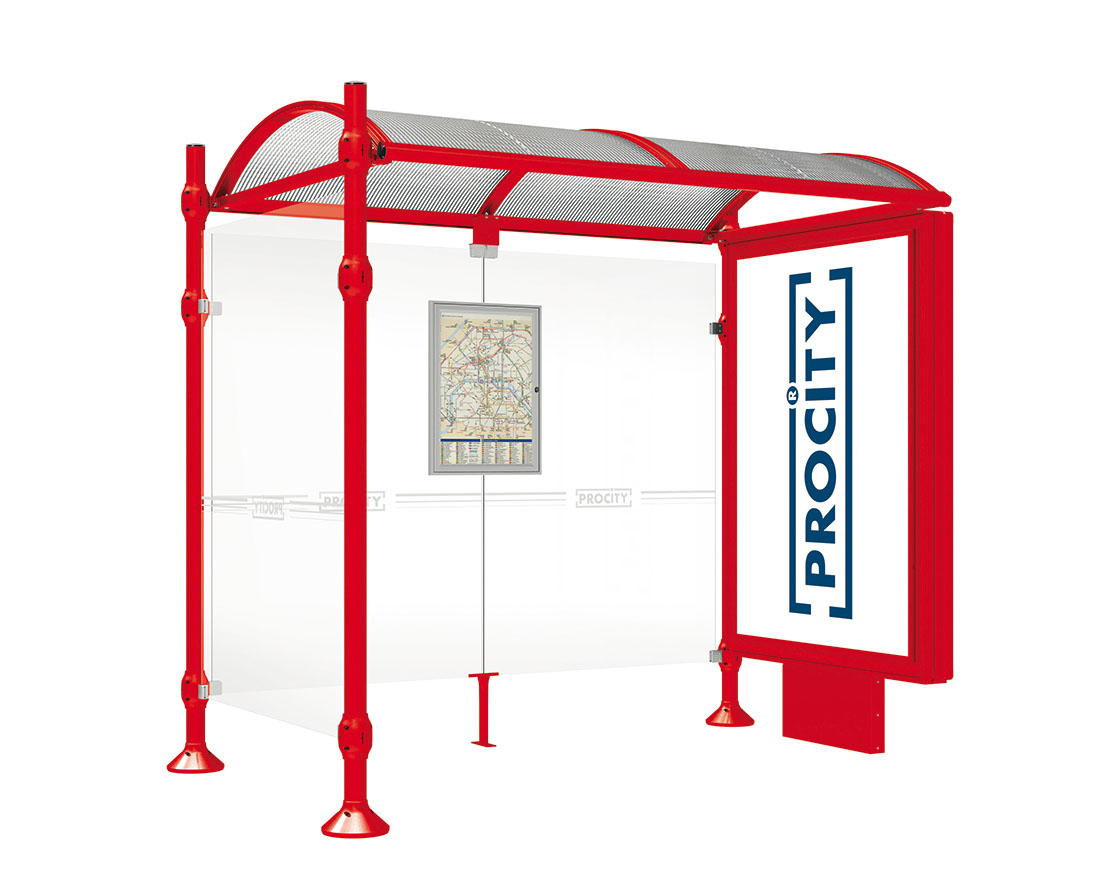 Wartehalle Province Gebürsteter Edelstahl Farbe:RAL 3020|Länge:2500 mm|Struktur:Mit Leuchtcaisson und einer Seitenverkleidung