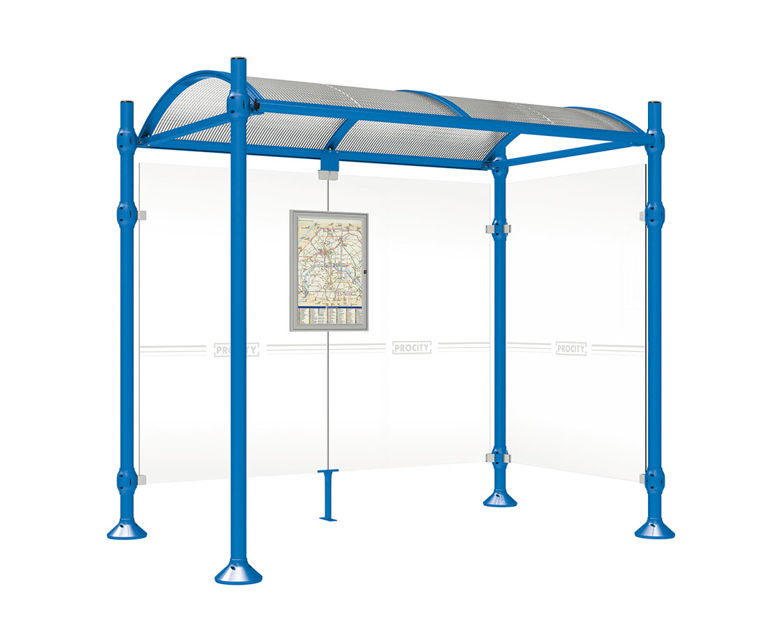 Wartehalle Province Gebürsteter Edelstahl Farbe:RAL 5010|Länge:2500 mm|Struktur:Mit einer Seitenverkleidung