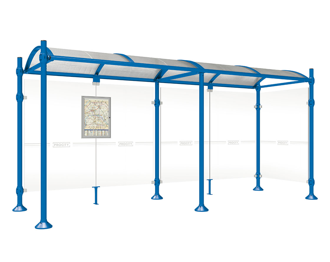 Wartehalle Province Gebürsteter Edelstahl Farbe:RAL 5010|Länge:5000 mm|Struktur:Mit einer Seitenverkleidung