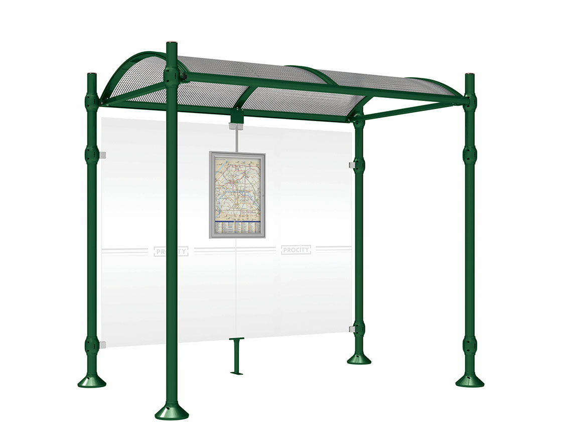 Wartehalle Province Gebürsteter Edelstahl Farbe:RAL 6005|Länge:2500 mm|Struktur:Ohne Seitenverkleidung