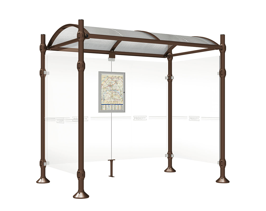 Wartehalle Province Gebürsteter Edelstahl Farbe:RAL 8017|Länge:2500 mm|Struktur:Mit 2 Seitenverkleidungen