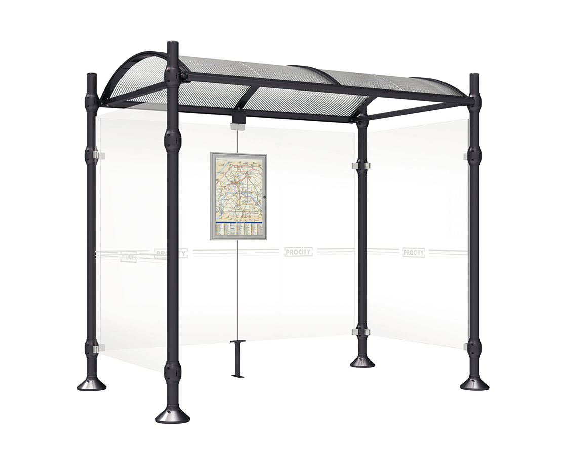 Wartehalle Province Gebürsteter Edelstahl Farbe:RAL 9005|Länge:2500 mm|Struktur:Mit 2 Seitenverkleidungen