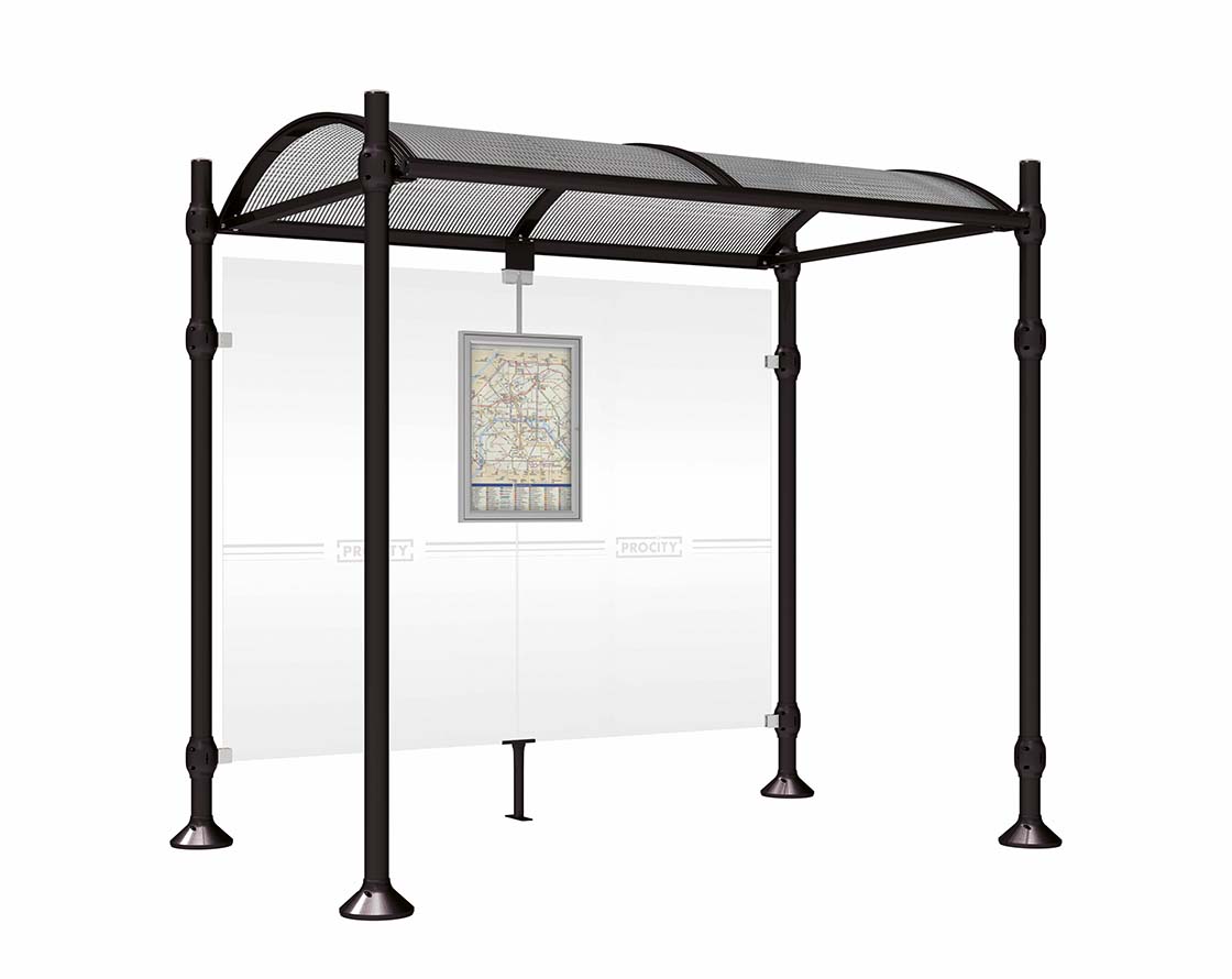Wartehalle Province Gebürsteter Edelstahl Farbe:RAL 9005|Länge:2500 mm|Struktur:Ohne Seitenverkleidung