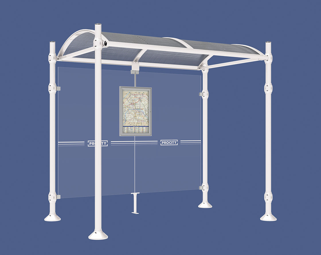 Wartehalle Province Gebürsteter Edelstahl Farbe:RAL 9010|Länge:2500 mm|Struktur:Ohne Seitenverkleidung