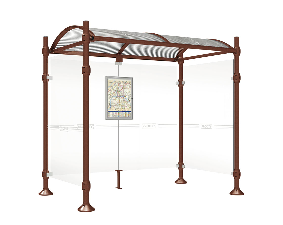 Wartehalle Province Gebürsteter Edelstahl Farbe:Rost Korten Effekt|Länge:2500 mm|Struktur:Mit 2 Seitenverkleidungen