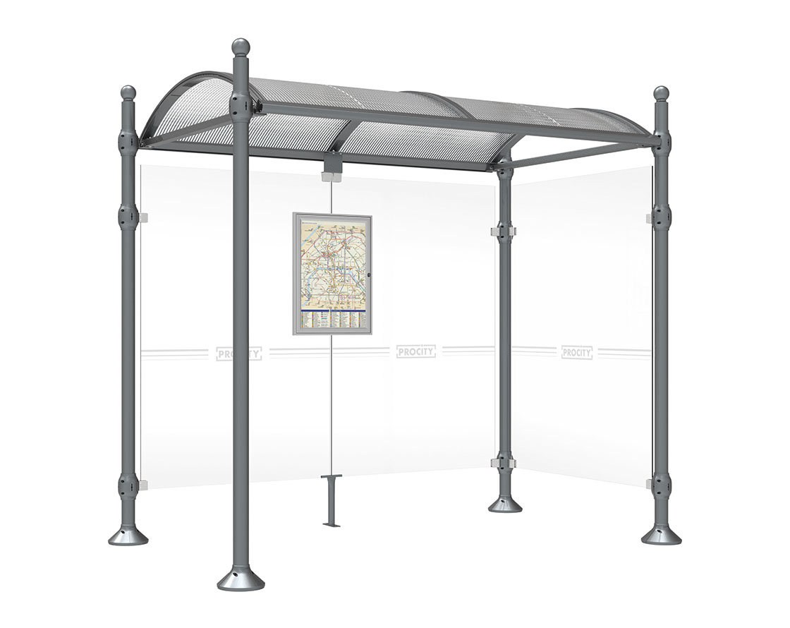 Wartehalle Province Kugel Farbe:Procity grau|Länge:2500 mm|Struktur:Mit einer Seitenverkleidung
