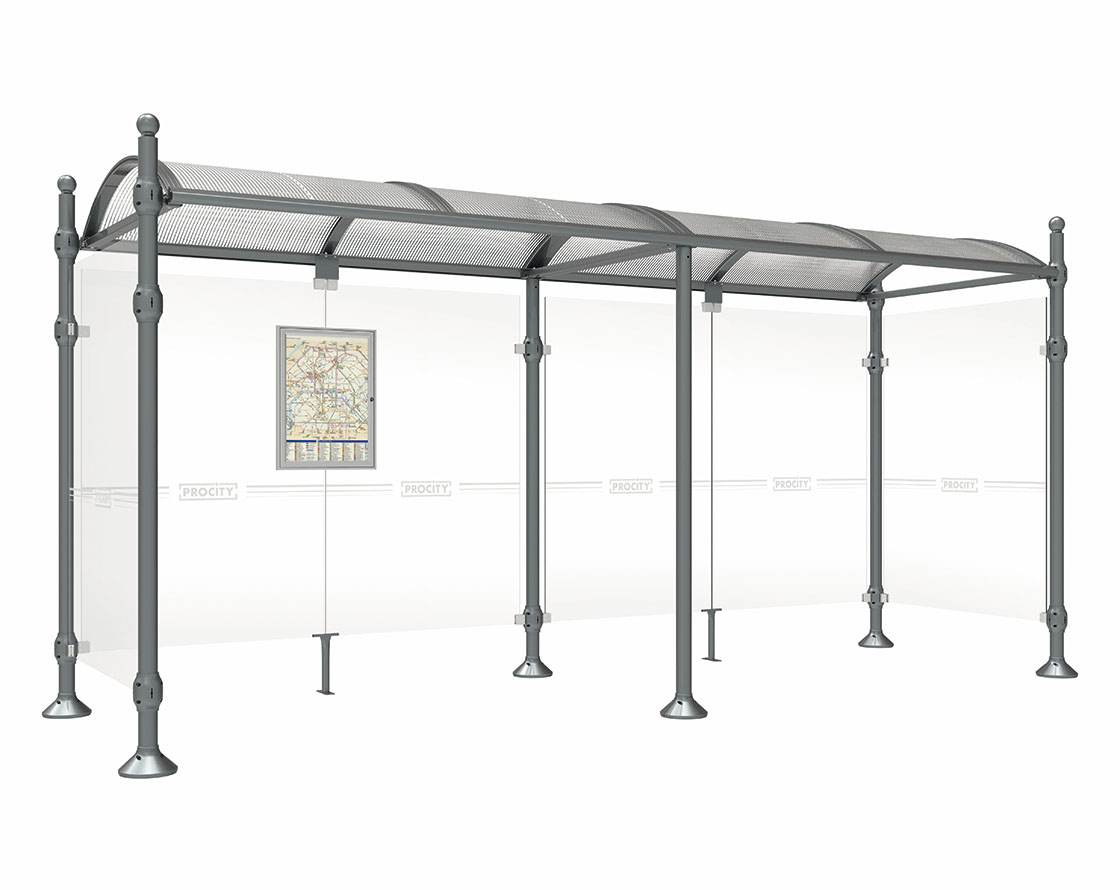 Wartehalle Province Kugel Farbe:Procity grau|Länge:5000 mm|Struktur:Mit 2 Seitenverkleidungen