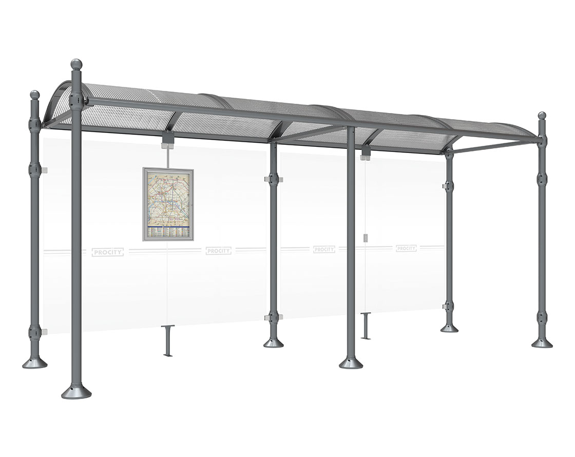 Wartehalle Province Kugel Farbe:Procity grau|Länge:5000 mm|Struktur:Ohne Seitenverkleidung