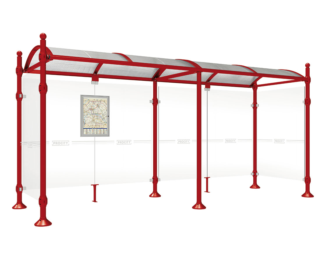 Wartehalle Province Kugel Farbe:RAL 3004|Länge:5000 mm|Struktur:Mit 2 Seitenverkleidungen