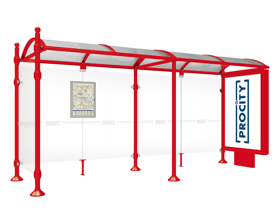 Wartehalle Province Kugel Farbe:RAL 3020|Länge:5000 mm|Struktur:Mit Leuchtcaisson und einer Seitenverkleidung