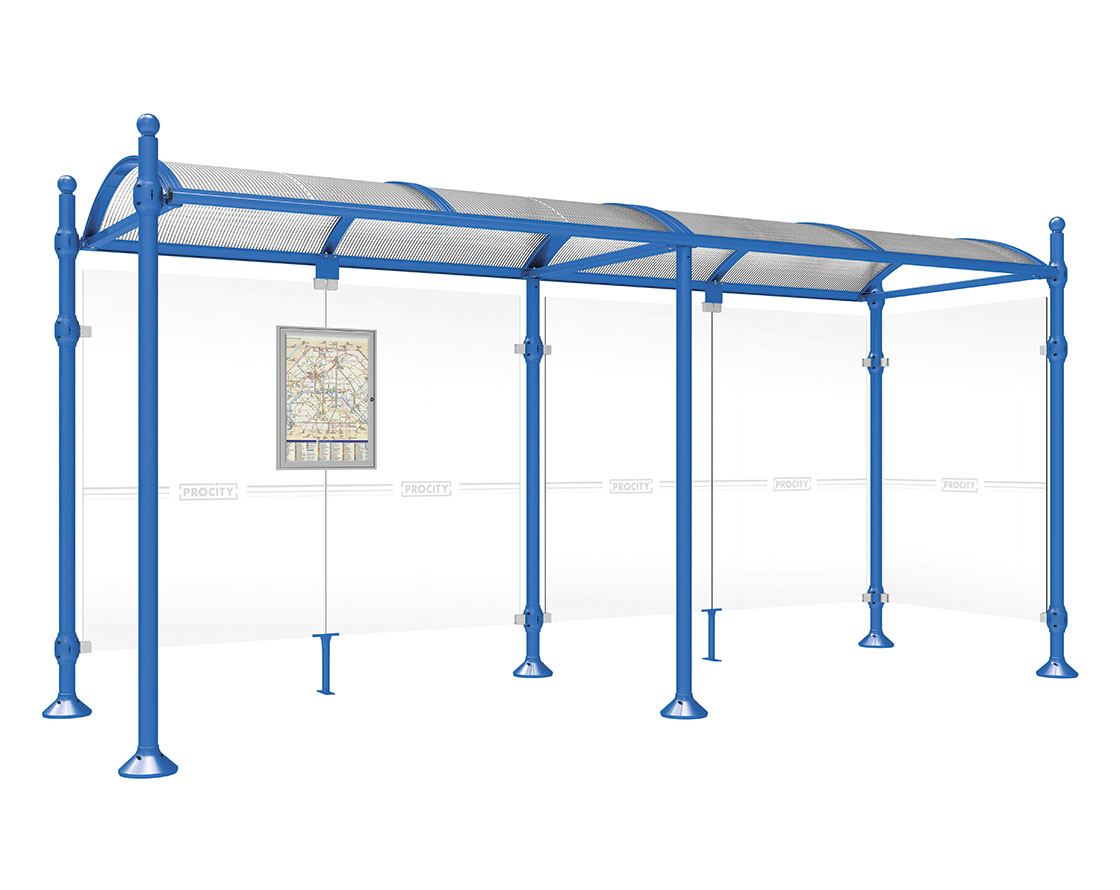 Wartehalle Province Kugel Farbe:RAL 5010|Länge:5000 mm|Struktur:Mit einer Seitenverkleidung