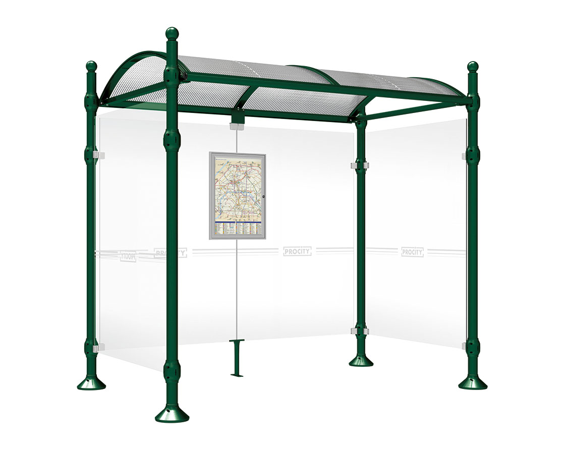 Wartehalle Province Kugel Farbe:RAL 6005|Länge:2500 mm|Struktur:Mit 2 Seitenverkleidungen